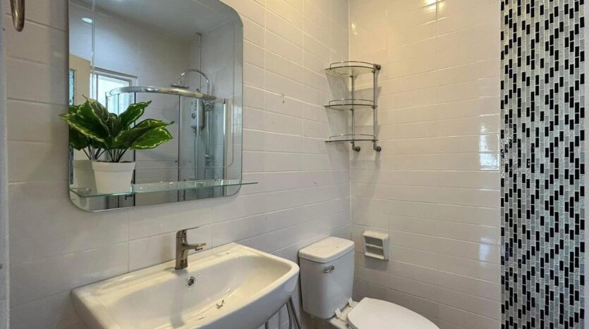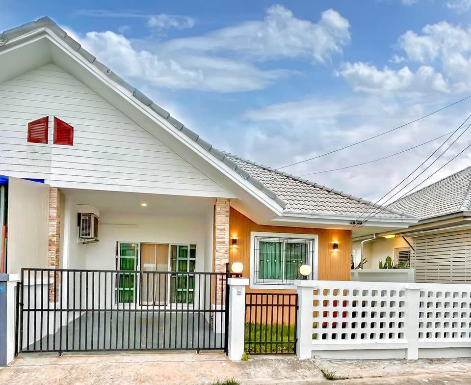 2 Bedrooms Twin House in East Pattaya for Sale – This twin house is ideal for those who enjoy city living without sacrificing space and comfort. Situated on a 142.4 SQM land plot, the home features 2 bedrooms and 2 bathrooms and comes fully furnished with brand-new furniture. The spacious living area is complemented by large windows that fill the home with natural light, creating a bright and airy atmosphere. The wide road in front enhances privacy, while the grassy yard and well-designed backyard garden offer a peaceful retreat. A dedicated laundry space adds to the home’s practicality. Additional features include 3 air conditioners, a Thai-style kitchen with a range hood, and thoughtful design elements that ensure comfort and functionality.