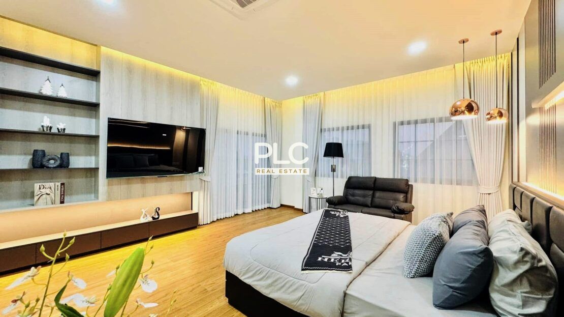 3 Bedrooms 6 Bathrooms Pool Villa for Sale in Tungklom-Talman. Offering 304 Sqm of land plot size and 504 Sqm of useable area. It comes full furnished. Featuring high ceiling living area, fitted furniture, built-in kitchen, washing machine, en-suite bathroom and bath tub, built-in wardrobe. The villa also offers plenty of car parking space and a private swimming pool, making it ideal for both relaxation and entertainment.