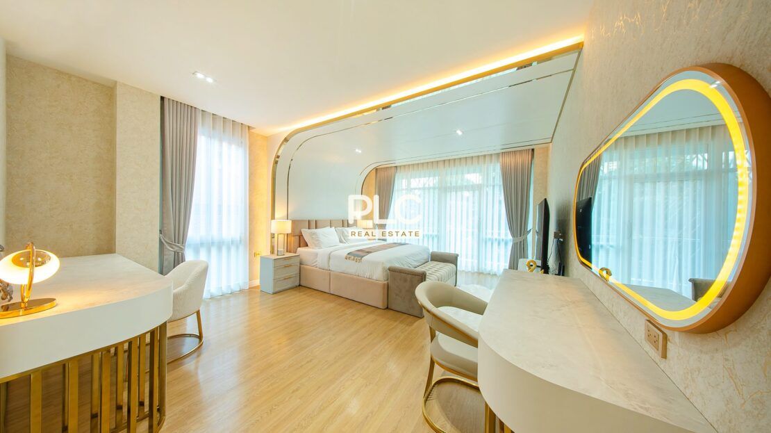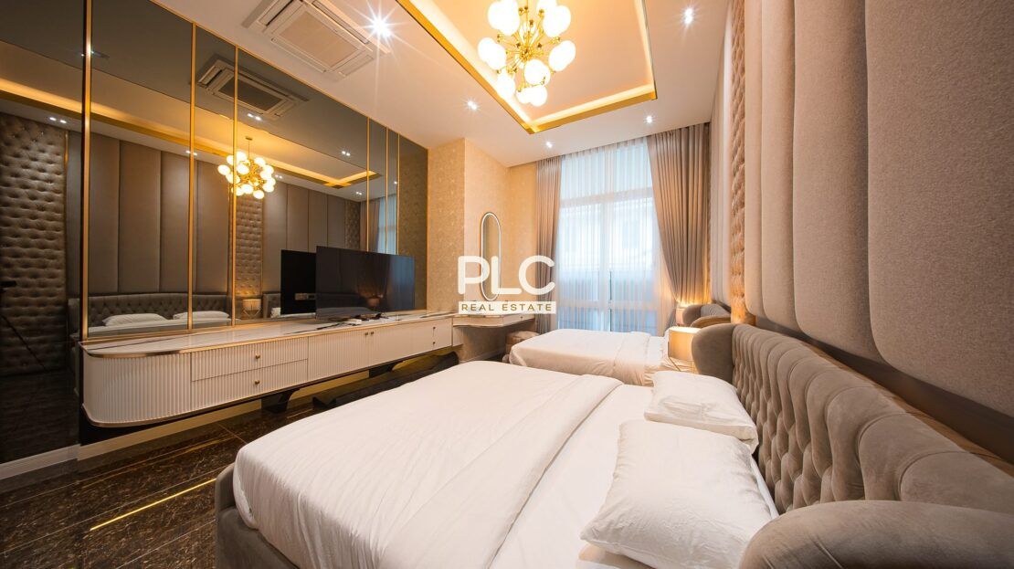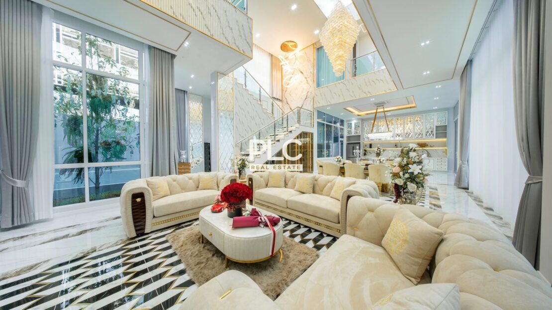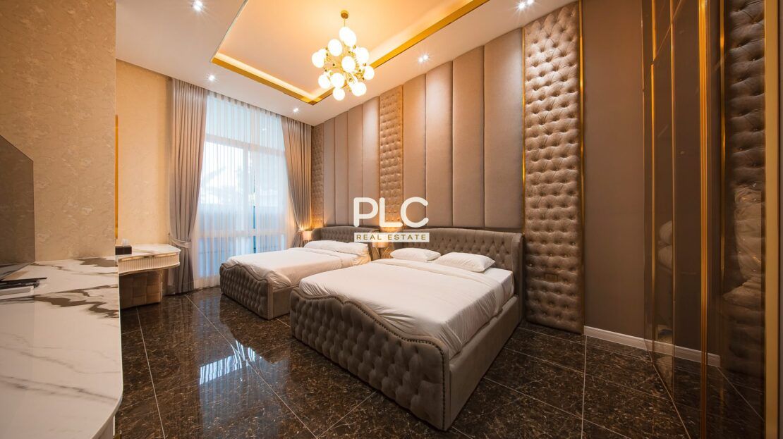7 Beds Luxury Pool Villa for Sale – This ultra-luxurious beachfront villa in Na Jomtien, Chonburi is a masterpiece of modern architecture, offering an unparalleled living experience. Spanning 610 sqm of meticulously designed living space on a 436 Sqm plot, this residence features 7 spacious bedrooms and 8 elegant bathrooms, all fully furnished with high-end furniture and premium electric appliances. The grand interior boasts high ceilings, intricate chandeliers, and an expansive living and dining area, making it ideal for both relaxation and entertainment. Designed for ultimate comfort, the villa includes a private swimming pool and a state-of-the-art fitness room, allowing residents to enjoy a resort-style lifestyle in complete privacy. The luxurious bedrooms are generously sized, featuring stylish en-suite bathrooms and large windows that fill the space with natural light. Nestled along the pristine shores of Na Jomtien, this prime beachfront location provides breathtaking ocean views, a serene ambiance, and easy access to fine dining, international schools, golf courses, and Pattaya’s vibrant city life. Whether for personal enjoyment or as a high-yield investment, this exceptional property offers both exclusivity and unmatched value in one of Pattaya’s most prestigious coastal destinations.