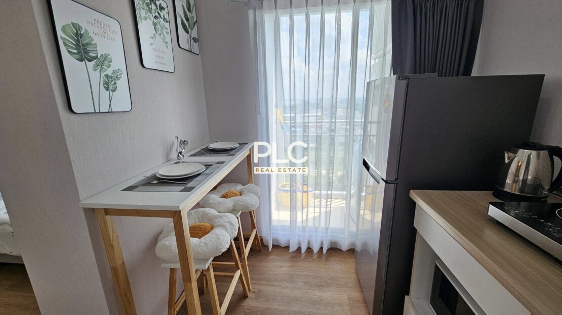 This newly renovated studio unit on the 8th floor at Lumpini Condo Town Sukhumvit–North Pattaya offers 23 SQM of efficiently designed living space. Positioned at the corner of the building, the unit features a private balcony with open city views and excellent air circulation thanks to its north-facing orientation and built-in ventilation channel.