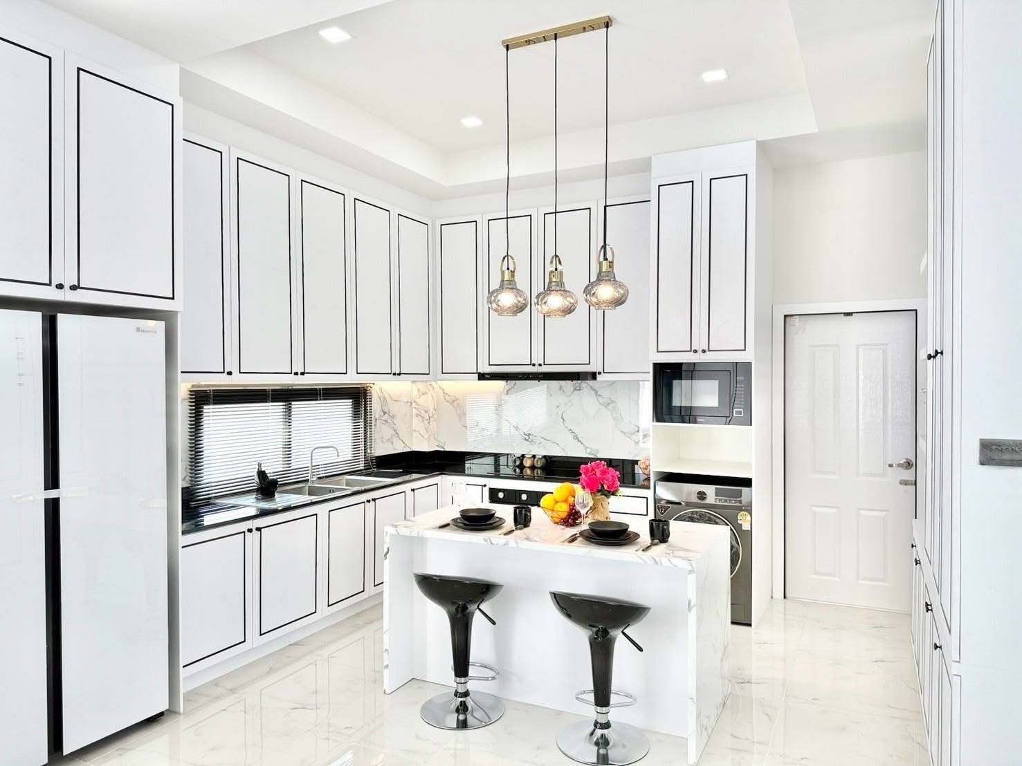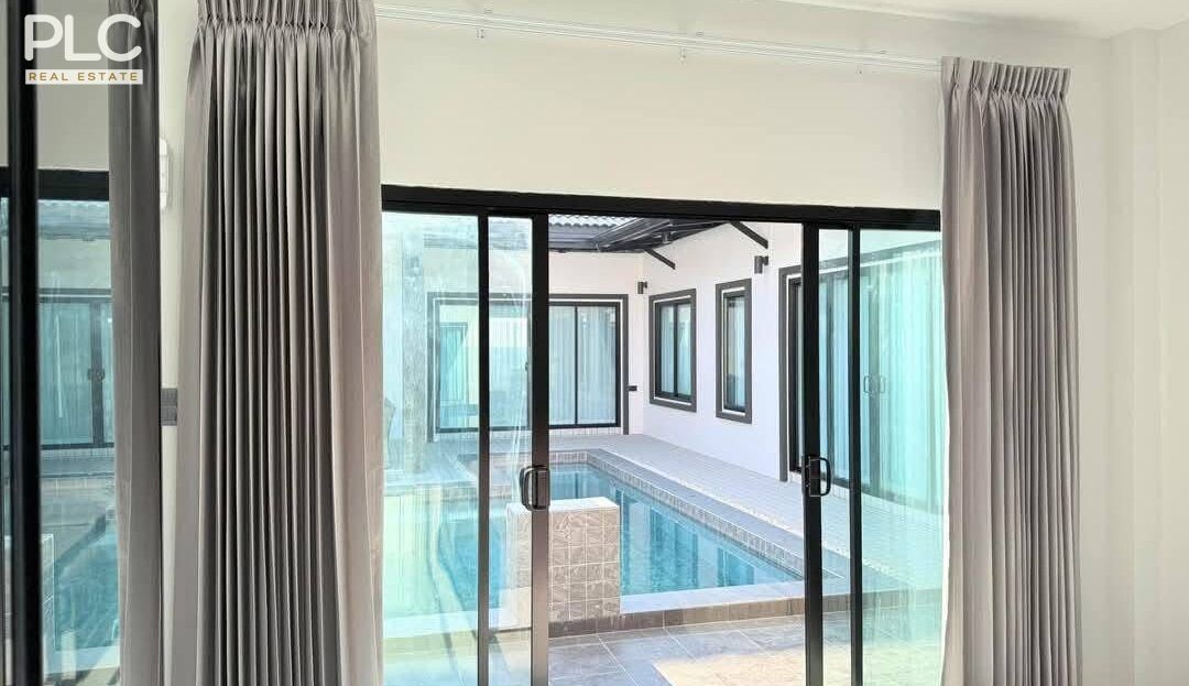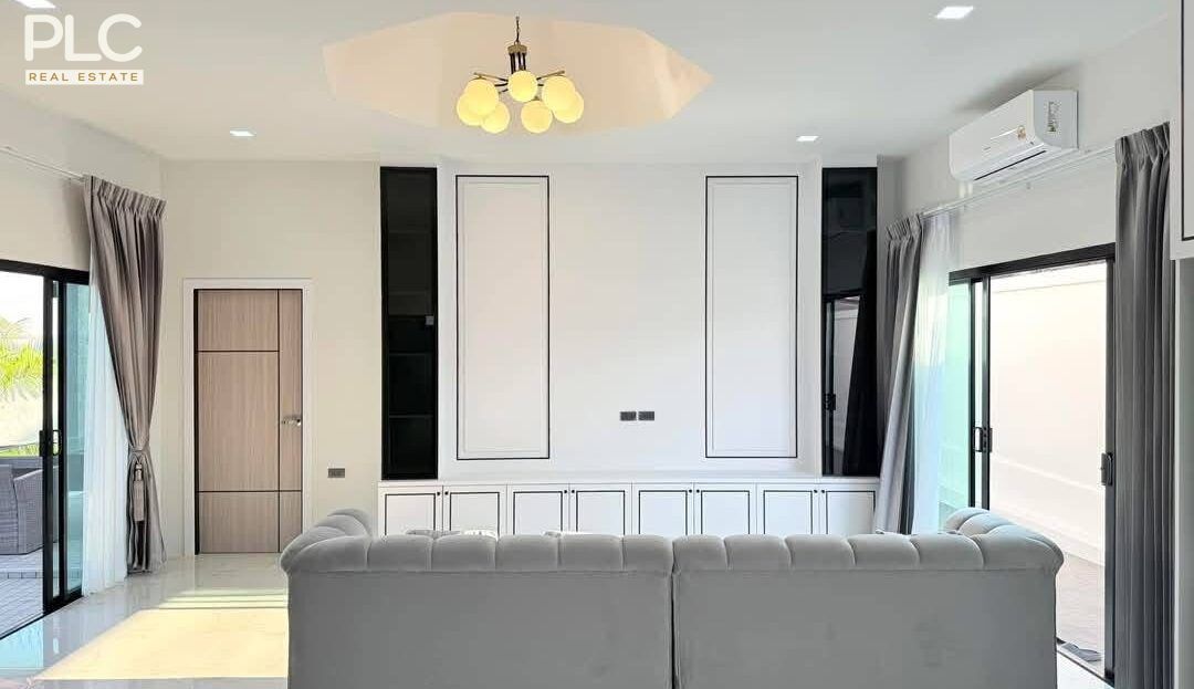 This modern one-storey pool villa offers stylish design, functional living space, and a private saltwater overflow swimming pool (7×4×1.3 meters). Perfectly located on Siam Country Club Road, the property is just steps away from Flower Land and Mabprachan Reservoir, with easy access to Sukhumvit Road and Pattaya city.