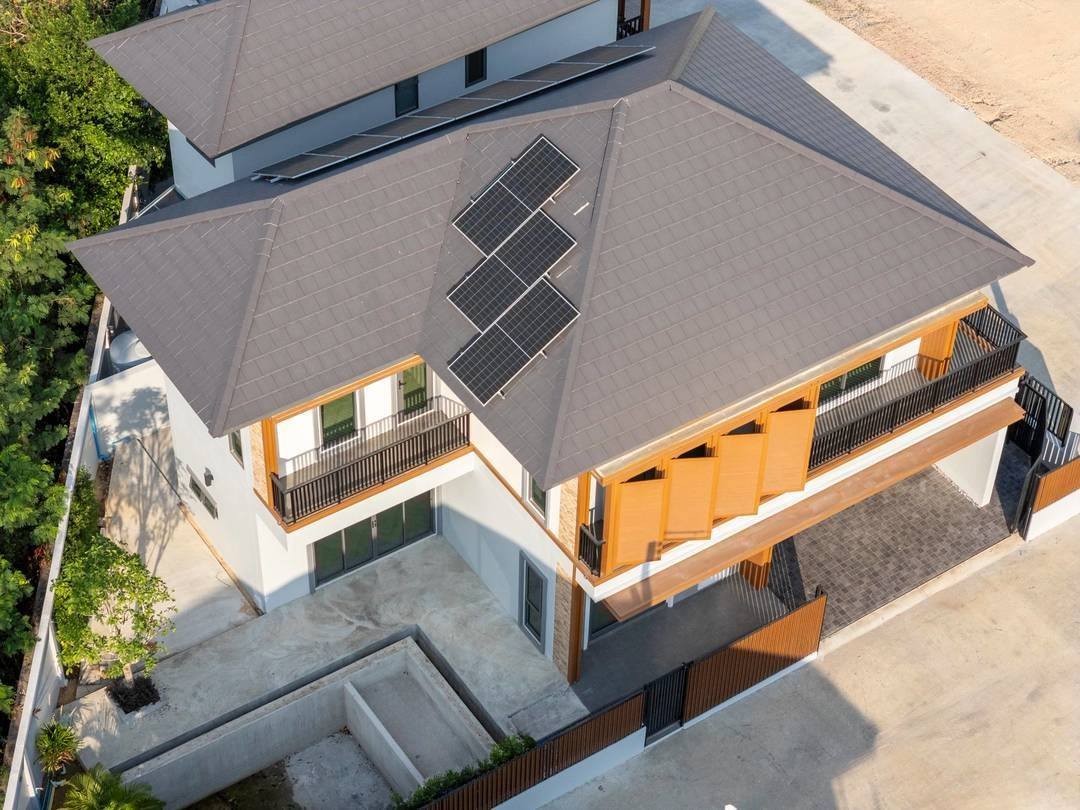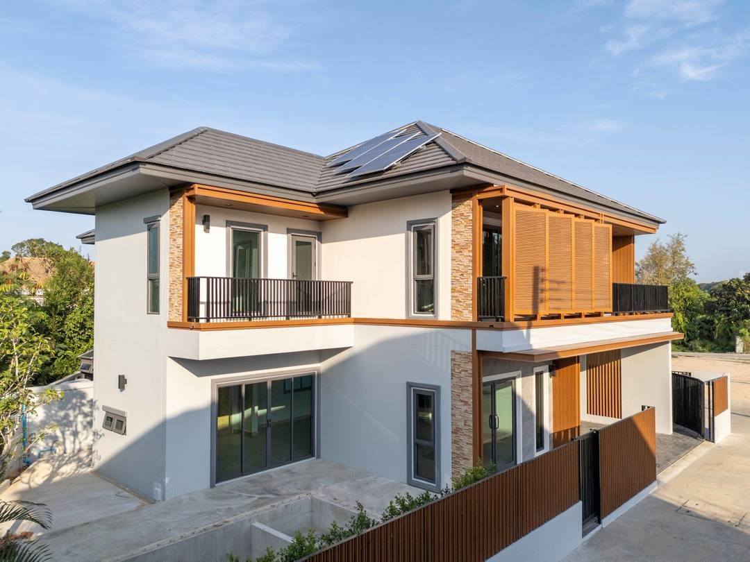 Modern Tropical House in Mabprachan for Sale – This 4-bedroom, 3-bathroom home offers a spacious and functional living environment. Set on a 260 SQM land plot with a 240 SQM usable area, the house features an open-plan living and dining space, a built-in kitchen, and a private swimming pool. Designed for convenience, it comes equipped with a 5KW solar cell system, a smart door lock, an automatic gate, and a termite control system. Additional features include a water pump with a 2,000L reserve tank, as well as separate water and electricity meters. With covered parking for two cars, this unfurnished home provides a great opportunity to customize the space to your style in the desirable Mabprachan area.