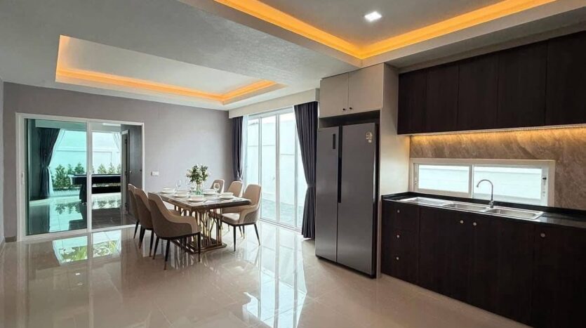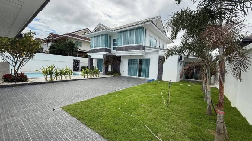 Experience modern and comfortable living in this beautifully designed two-storey private pool villa, perfectly situated on a generous 102 square wah land plot in East Pattaya. With a spacious living area of 280 sqm, this villa offers an ideal combination of style, privacy, and practicality, making it perfect for families, retirees, or anyone seeking a luxurious and move-in-ready home.