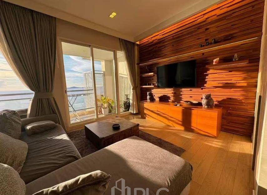 With a spacious living area of 102 square meters, the unit features a refined open-plan layout, large floor-to-ceiling windows, and a private balcony overlooking the shimmering Jomtien coastline. The interior design blends modern sophistication with warmth, making it a perfect home for those who appreciate both elegance and functionality.