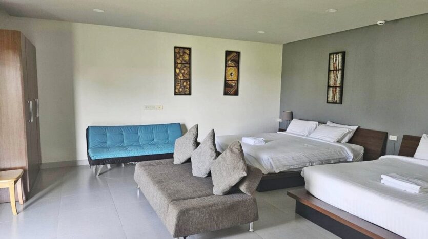 Resort Business for Sale in Bangsaray – This 13-bedroom resort is still actively running and presents a fantastic opportunity for investors. Situated on a 3,956 SQM land plot, the property is fully furnished, with each room offering a wardrobe and en-suite bathroom for guest comfort. The resort features a spacious lounge area with sofas and a TV, a dining area, and a beautiful tropical garden that adds to the resort’s serene atmosphere. With an operational swimming pool, car park, and a fully equipped kitchen, this resort is ready to continue serving guests. Located in Bangsaray, the resort is conveniently close to local beaches and attractions, making it a popular destination for both short and long-term stays. If you’re looking for a business opportunity that’s already running and profitable, this fully operational resort is the perfect investment.