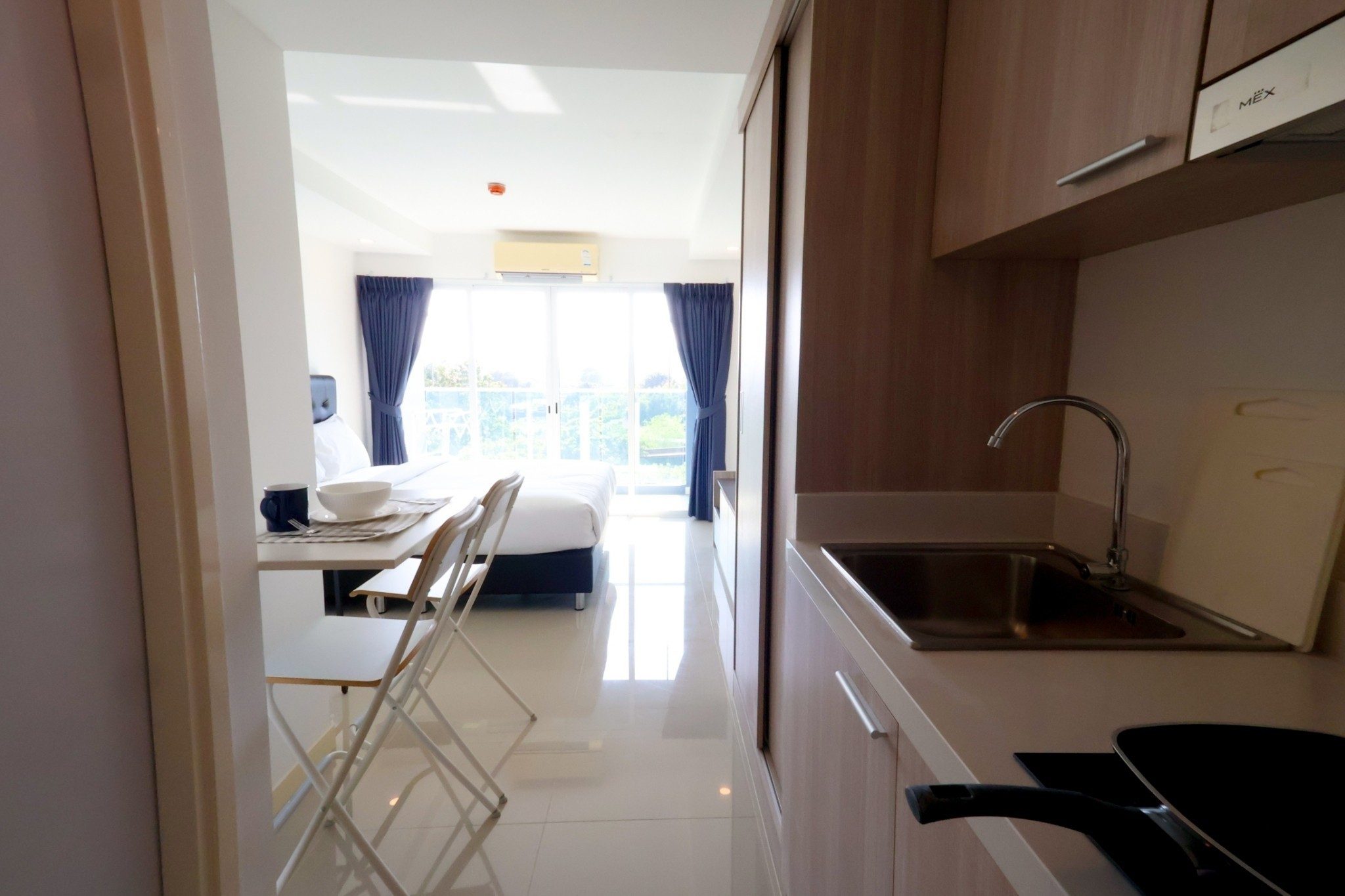 Sea Saran Condominium is a modern residential development offering 184 units spread across 8 floors, with options for studio and one-bedroom apartments. The condominium features excellent amenities, including a rooftop infinity pool with a Jacuzzi, a well-equipped gym, a sauna, and a rooftop garden with a BBQ area, perfect for social gatherings. The building also provides 24-hour security, with CCTV surveillance and key card access for residents’ safety. Combining modern living with a peaceful atmosphere, Sea Saran is an ideal choice for those looking for a comfortable and secure home or an investment opportunity.