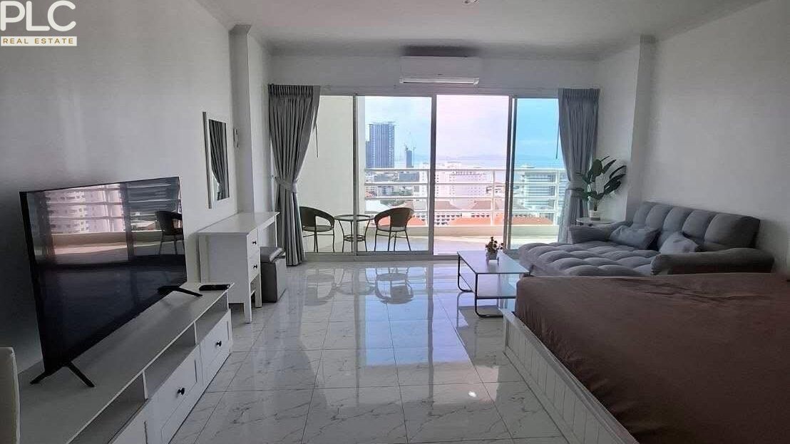 This fully furnished studio condo is located on the 20th floor of View Talay 5D, offering 48 sqm of well-planned living space with stunning views of both Jomtien Beach and the surrounding cityscape. Designed for comfort and convenience, the unit features a bright open layout, maximizing natural light and ventilation, and includes a private balcony to enjoy the sea and city views. The interior comes fully equipped with a king-size bed, air conditioning, ceiling fan, hot water system, refrigerator with separate freezer, microwave, ceramic stove, and smart TV—ready for immediate occupancy.