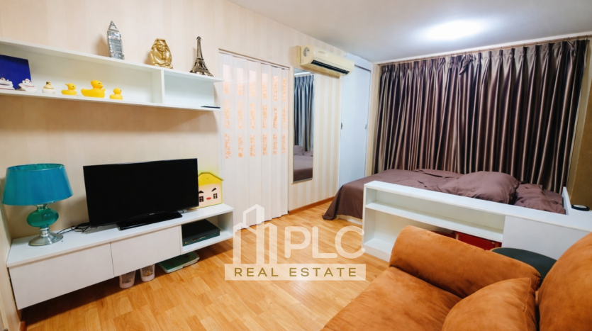 The unit sits on the 14th floor and offers 22.02 sqm of efficiently arranged space. The layout provides a practical studio design with city and mountain views. In addition, large windows allow natural light to brighten the interior. The room includes air conditioning, a refrigerator, a television, a sofa bed, a 5 foot bed, curtains, and a folding partition for flexible separation. Residents enjoy a swimming pool, fitness center, secure parking, laundry services, and an on site mini mart. Consequently, this property presents strong value in a central location.