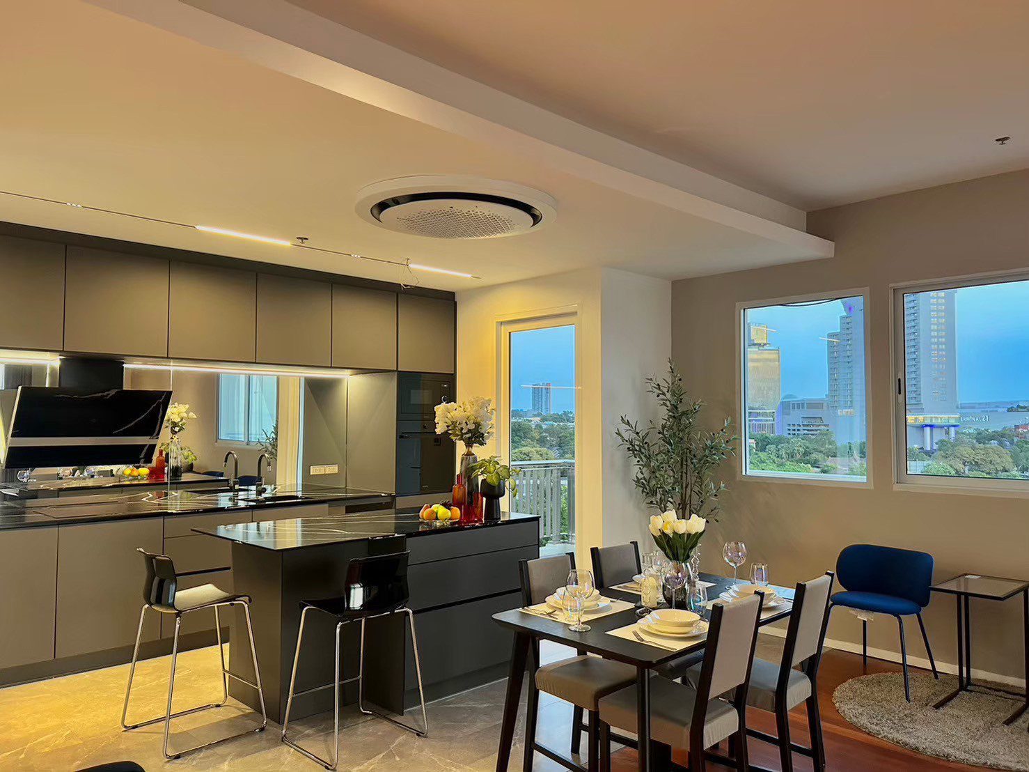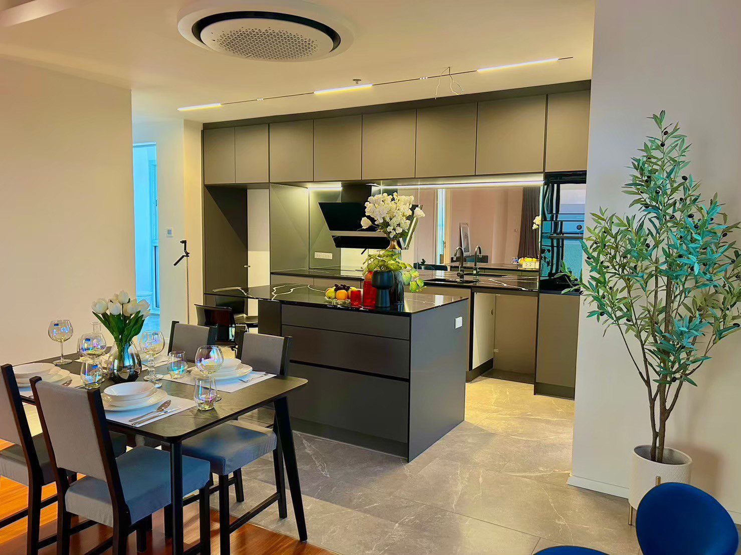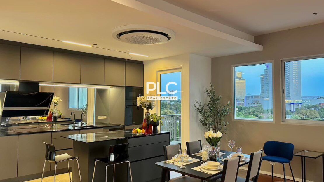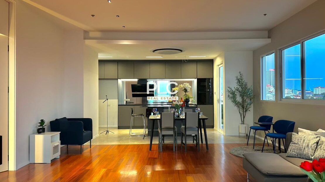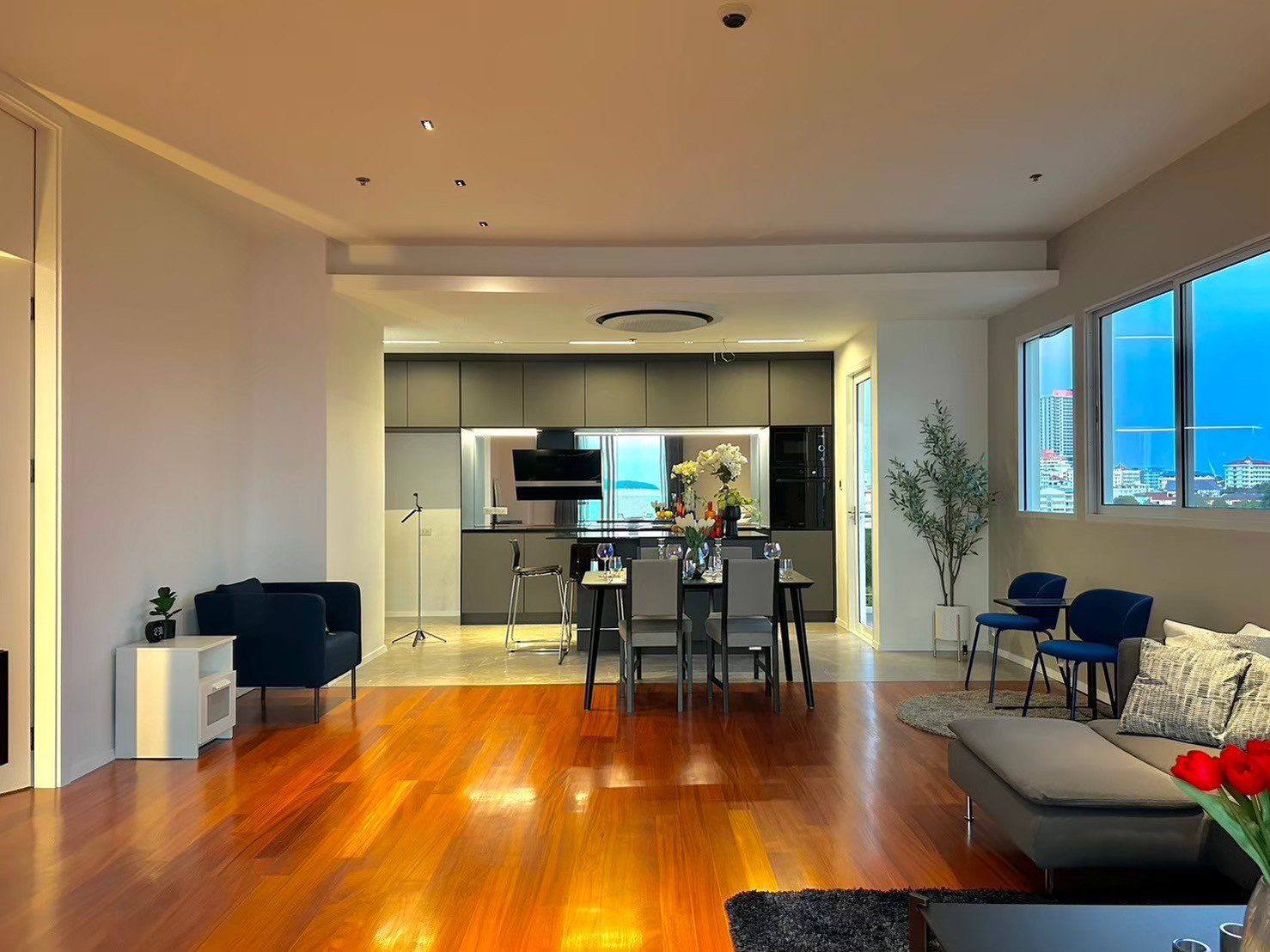 The Cove Pattaya 1 Bedroom for Sale – This stunning 1-bedroom, 2-bathroom condo in Wongamat offers 138.58 sqm of living space and is located on the 8th floor. Fully furnished, the condo features an open-plan living area with a comfortable sofa, a built-in European kitchen with an island and full equipment, perfect for cooking and entertaining. The bedroom is equipped with a built-in wardrobe and an en-suite bathroom for added comfort and privacy. The spacious balcony provides a truly beautiful sea view, making it an ideal spot to relax and enjoy the coastal scenery.