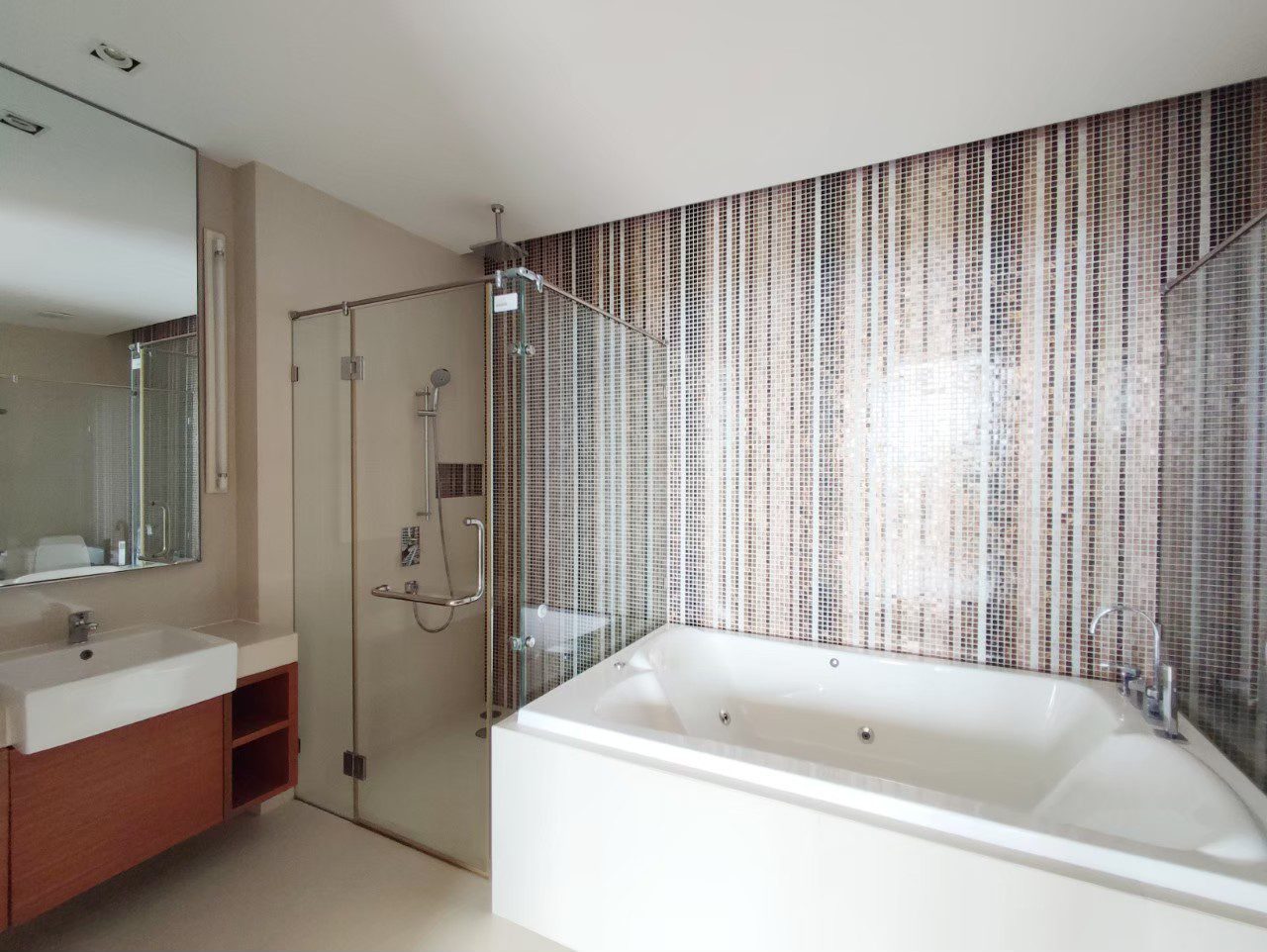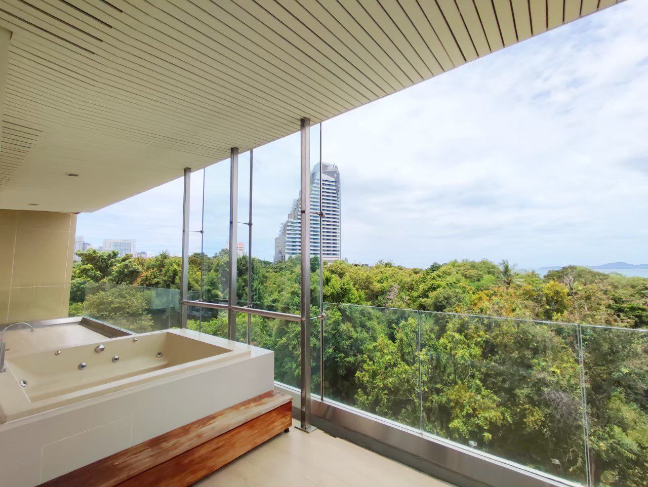 The Cove Pattaya 2 Bedrooms for Sale – This spacious 2-bedroom, 3-bathroom condo in Wongamat offers 178.96 sqm of living area and is located on the 4th floor. The property comes unfurnished but includes fitted furniture, allowing for personalization to suit your style. It features a built-in European kitchen and an open-plan living area, perfect for entertaining and relaxation. Both bedrooms come with built-in wardrobes and en-suite bathrooms for added convenience and privacy. The balcony boasts a private jacuzzi with a partial sea view, offering a serene spot to unwind.