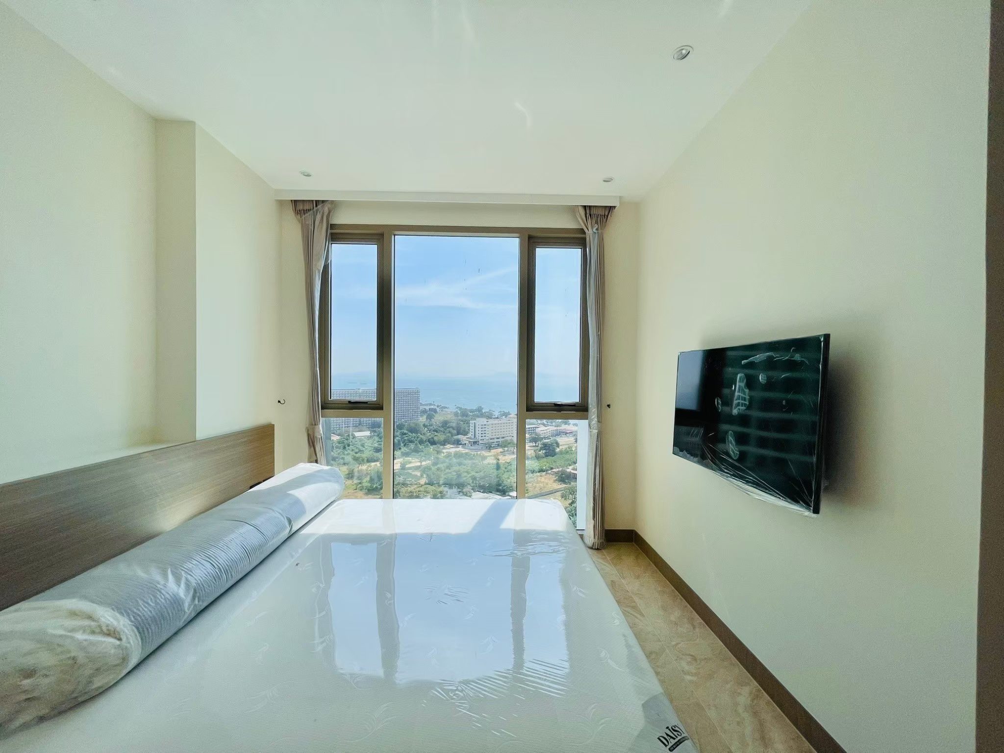 The Riviera Ocean Drive 1 Bedroom For Sale – This 1-bedroom, 1-bathroom condo offers 39.42 SQM of living space and is situated on the 24th floor, providing breathtaking sea views. The unit comes fully furnished, featuring a built-in European kitchen equipped with an electric hob, washing machine, and refrigerator. The living area includes a cozy sofa and TV, while the bedroom is fitted with a built-in wardrobe for ample storage. A highlight of this unit is the private jacuzzi on the balcony, where you can relax while enjoying the stunning ocean view, making it the perfect blend of luxury and comfort.