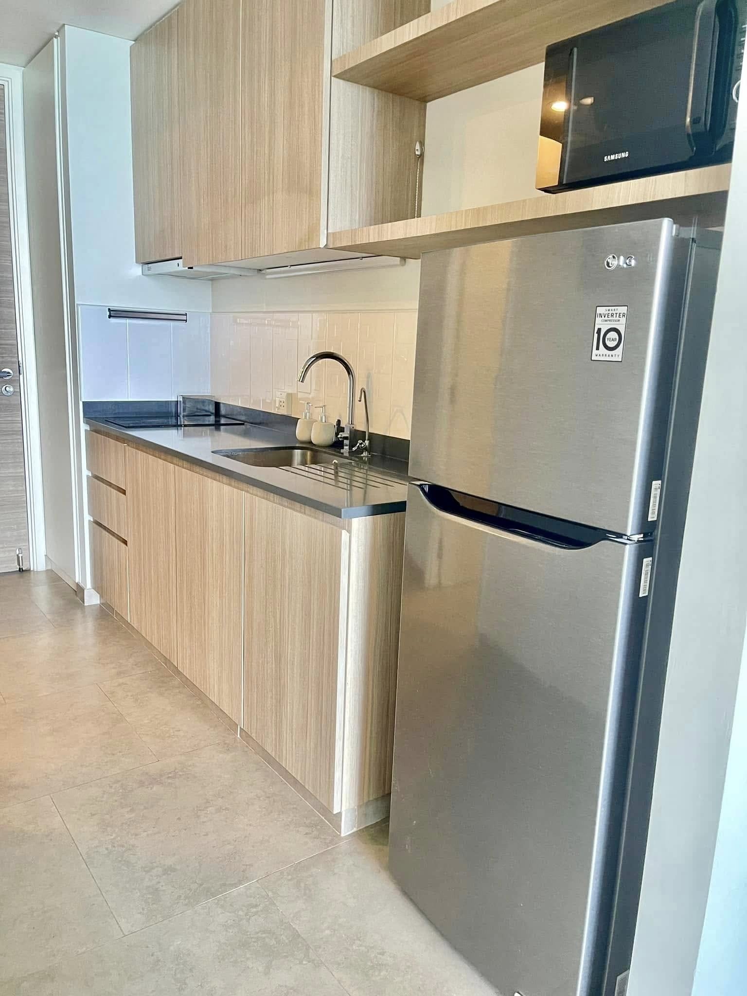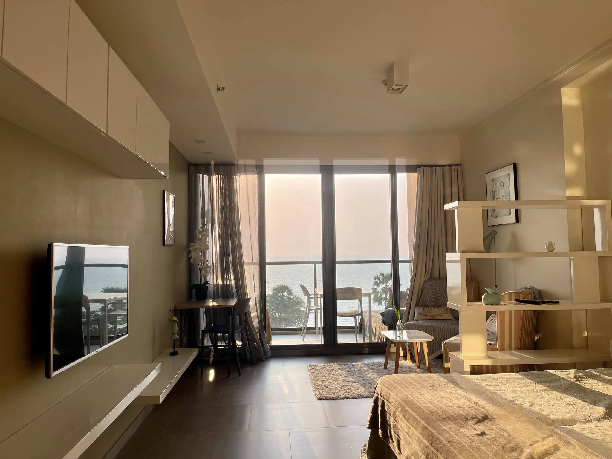 Zire Wongamat Studio Condo for rent – This luxurious studio condo is available for rent in the highly sought-after Wongamat Beach area. Situated on the 6th floor, the condo offers 38 sqm of living space, featuring a well-designed cooking area equipped with an electric hob, microwave, and dining table. The unit is fully furnished, providing a comfortable and stylish living environment. The highlight of this studio is the stunning sea view from the balcony, offering a peaceful and relaxing atmosphere perfect for enjoying the breathtaking beauty of the Gulf of Thailand.