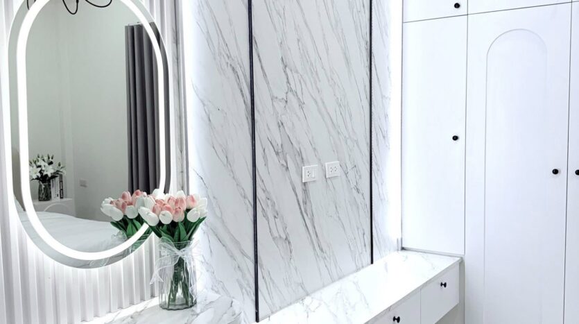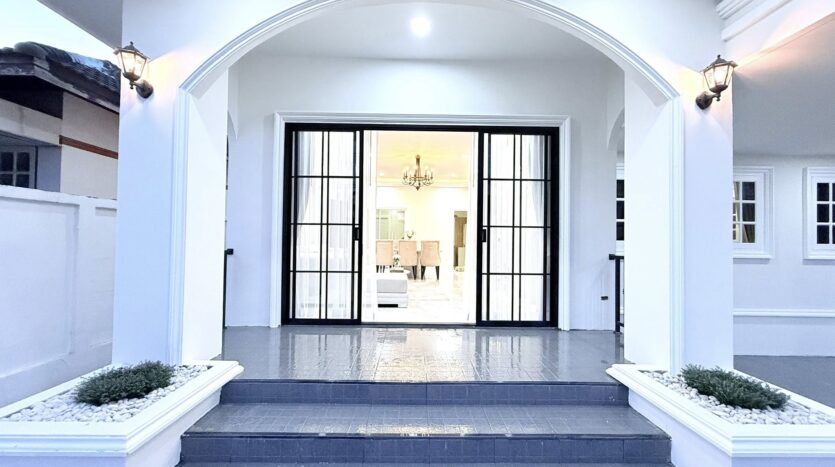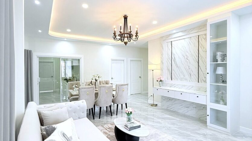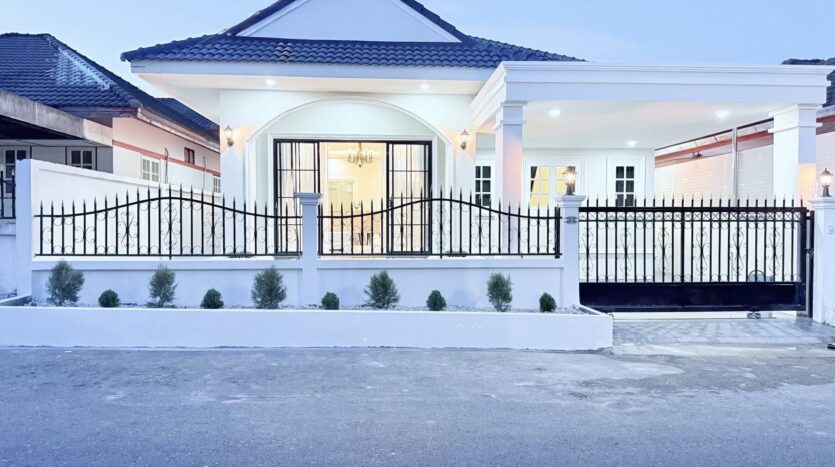 ขายบ้าน 3 ห้องนอนในพัทยาตะวันออก – บ้านชั้นเดียวที่มีเสน่ห์หลังนี้ออกแบบในสไตล์ English Cottage ที่หรูหรา บนพื้นที่ 212 ตร.ม. ภายในมีเพดานสูงโปร่ง สร้างบรรยากาศที่สว่างไสวและกว้างขวาง บ้านหลังนี้มีห้องนอนพร้อมเฟอร์นิเจอร์ครบครัน 3 ห้อง แต่ละห้องมีตู้เสื้อผ้าและโต๊ะเครื่องแป้ง พร้อมห้องน้ำทันสมัย 2 ห้อง พื้นที่ใช้สอยประกอบด้วยชุดโซฟาแสนสบายพร้อมโต๊ะกาแฟ ตู้วางทีวีบิวท์อิน และโต๊ะรับประทานอาหาร 6 ที่นั่ง เหมาะสำหรับการอยู่อาศัยแบบครอบครัวหรือจัดงานเลี้ยงรับรองแขก ผ้าม่านลายคลื่นสไตล์อังกฤษระดับพรีเมียมพร้อมป้องกันรังสียูวีติดตั้งทั่วทั้งบ้าน ช่วยเพิ่มทั้งสไตล์และฟังก์ชันการใช้งาน ห้องครัวมีเครื่องใช้ไฟฟ้าที่จำเป็นครบครัน ได้แก่ เตาพร้อมเครื่องดูดควัน ตู้เย็น ไมโครเวฟ และทีวี 2 เครื่อง พร้อมเครื่องปรับอากาศ 4 เครื่อง เพื่อความสะดวกสบายตลอดทั้งปี บ้านปูกระเบื้องใหม่ทั้งหลัง รวมถึงที่จอดรถและพื้นที่ซักรีด สิ่งอำนวยความสะดวกเพิ่มเติม ได้แก่ ปั๊มน้ำและถังเก็บน้ำสำรอง บ้านตกแต่งพร้อมเข้าอยู่หลังนี้ ผสมผสานเสน่ห์ ความสะดวกสบาย และการใช้งานได้จริงอย่างลงตัวในย่านพัทยาตะวันออกที่เงียบสงบ