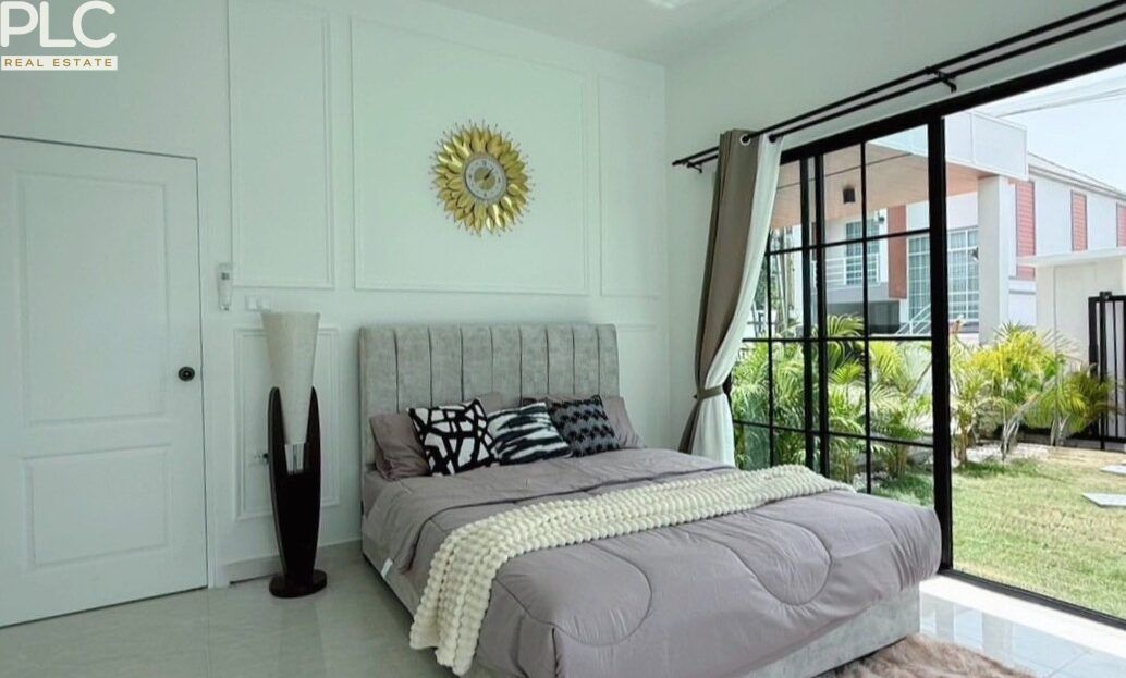 สัมผัสชีวิตโมเดิร์นในพูลวิลล่าชั้นเดียวที่ได้รับการปรับปรุงอย่างสวยงาม ตั้งอยู่ในทำเลที่ได้รับความนิยมสูง ย่านสยามคันทรีคลับ – หนองปรือ บนที่ดินขนาด 63.7 ตารางวา บ้านหลังนี้ประกอบด้วย 3 ห้องนอนกว้างขวาง และ 4 ห้องน้ำ พร้อมครัวกลางแจ้งแยกเป็นสัดส่วน เหมาะทั้งการทำอาหารประจำวันและงานเลี้ยงสังสรรค์