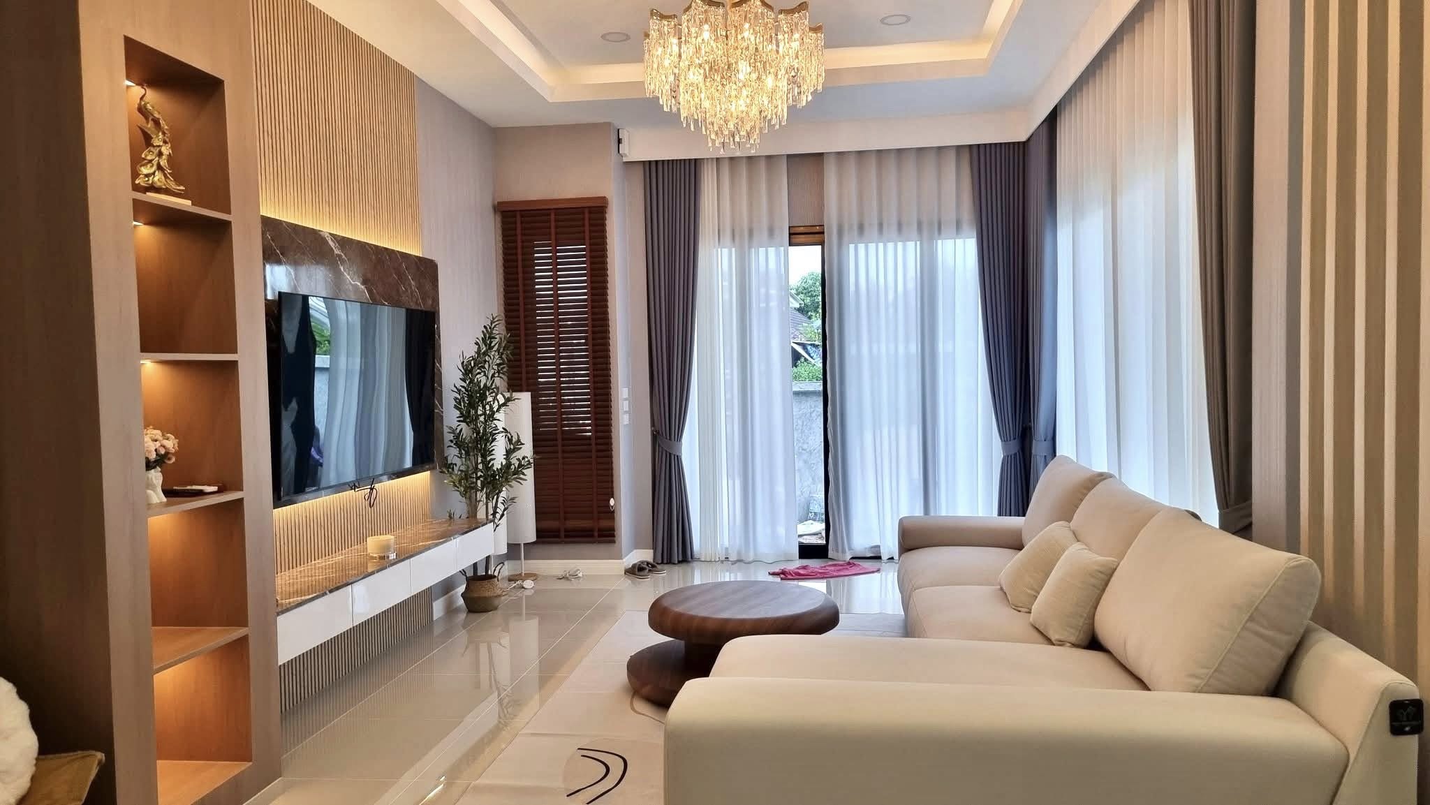 โคมไฟระย้า ผ้าม่าน และวอลเปเปอร์ครบ