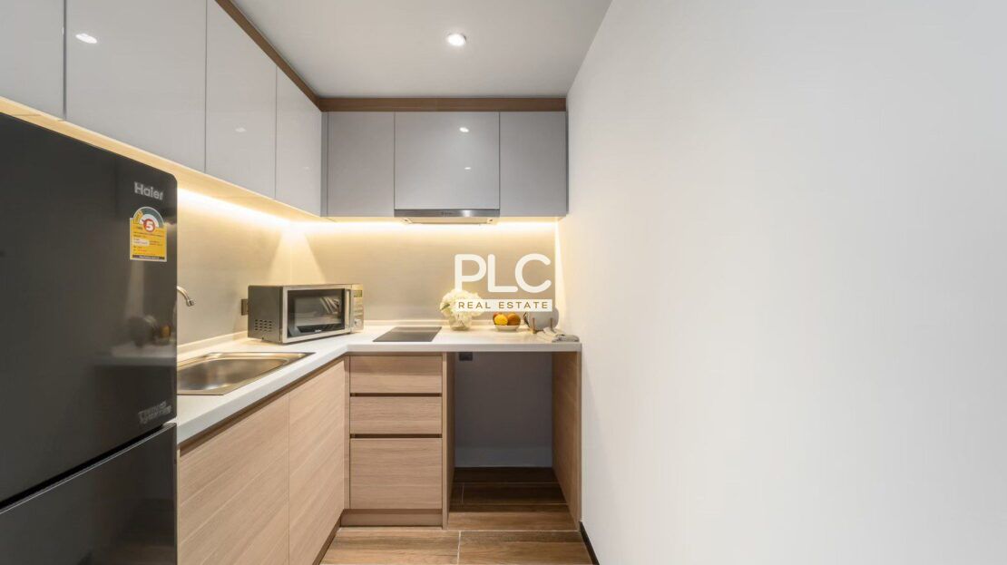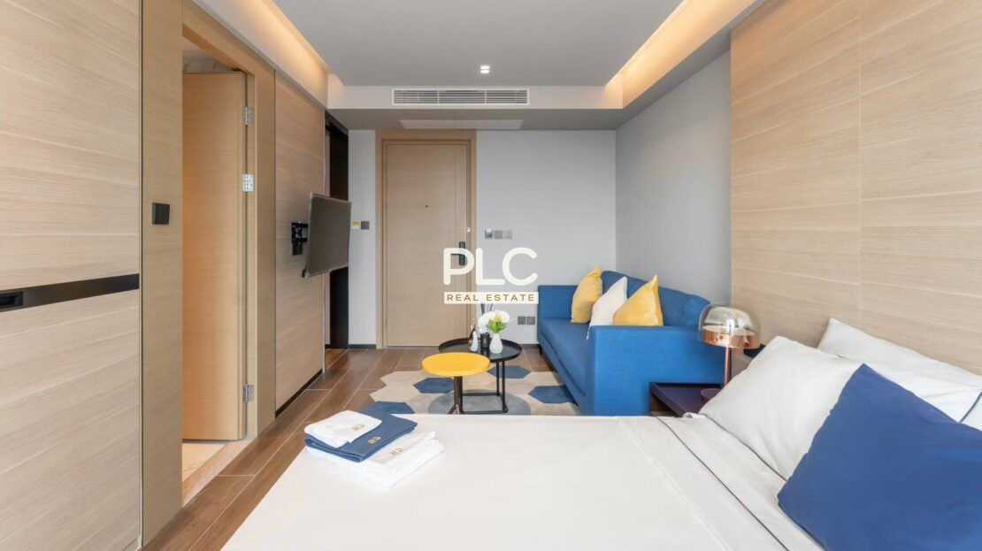 Studio 1 Bathroom Condo for Sale in Pratumnak. Available in Foreign Name Ownership. Offering 27.65 Sqm of living area and located on the 6th floor. It comes full furnished, built-in European kitchen, electric hob, microwave, built-in wardrobe, sofa, TV and Koh Larn View.