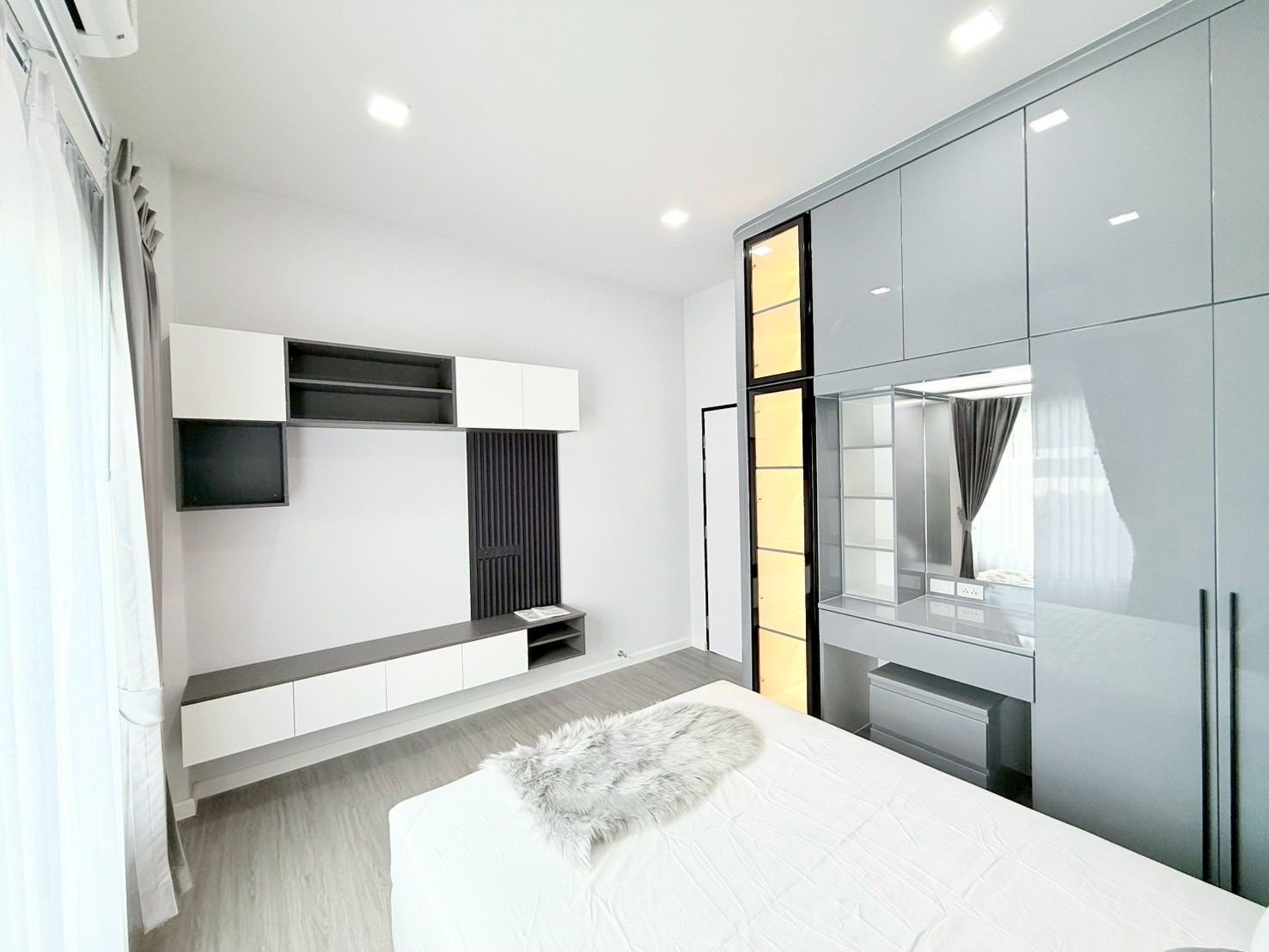 三间卧室,配备嵌入式衣柜和梳妆台,家具齐全