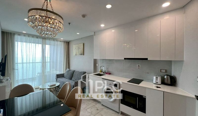 这套39平方米的高层公寓位于51层,坐拥中天海滩令人叹为观止的全景海景,是芭堤雅最具标志性的海滨高楼之一,堪称高端生活之选。公寓布局合理,包含一间卧室和一间浴室。此外,优越的地理位置让您无论在室内还是阳台,都能饱览一览无余的海岸线美景。