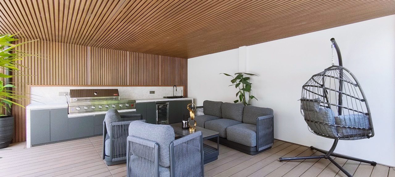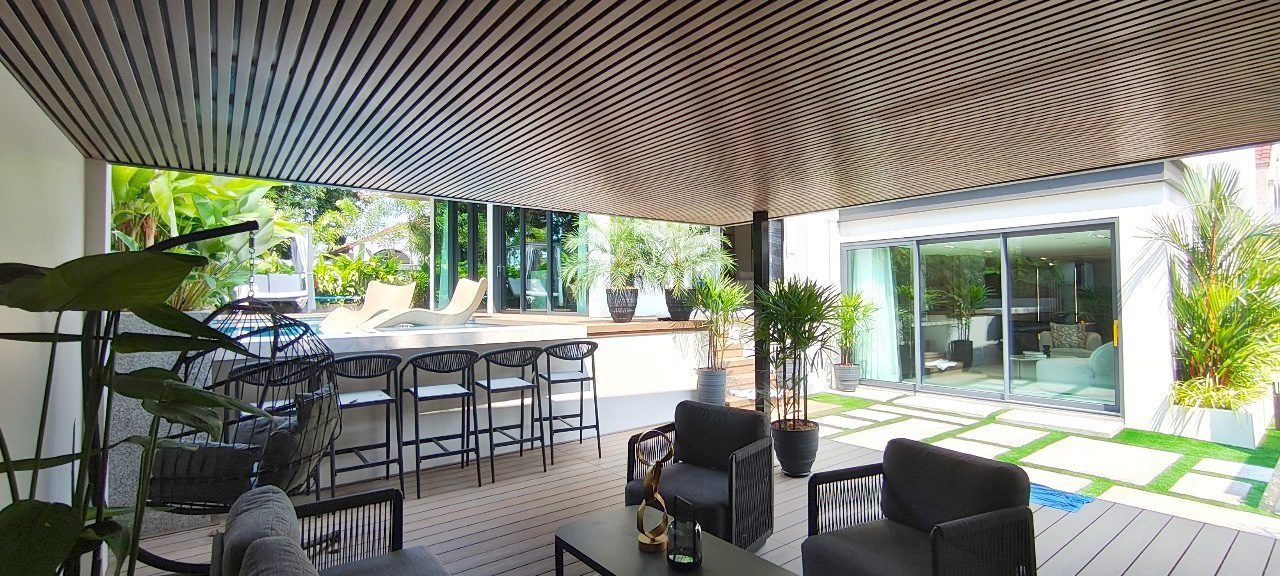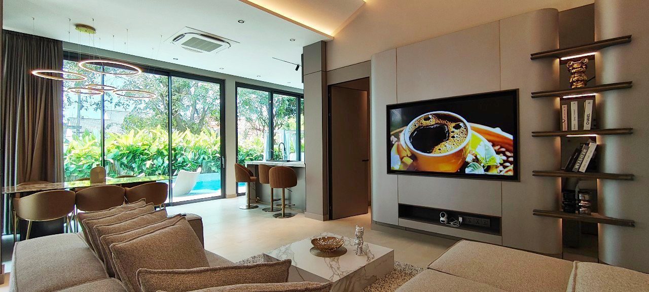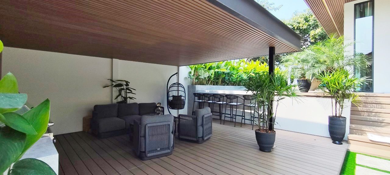 该住宅专为极致舒适而设计,配有 7 台全新吊顶式空调、带升降和滑动功能的双层钢化玻璃重型铝窗以及 Elica、Electrolux、Bosch 和 Samsung 的顶级电器。通过 Zigbee Gateway 控制的智能家居系统提高了便利性。所有台面均采用烧结石制成,确保耐用性和优雅性。别墅拥有全新的管道系统、9,000L 地下水箱和升级的电气系统,配有新的三相电表。在户外,居民可以享受 3.5 x 10.5 米的海水游泳池,周围环绕着郁郁葱葱的热带景观,增强了宁静的氛围。