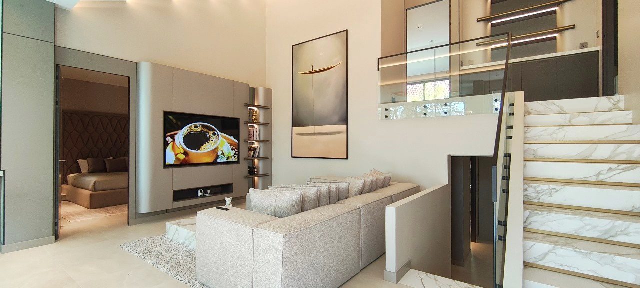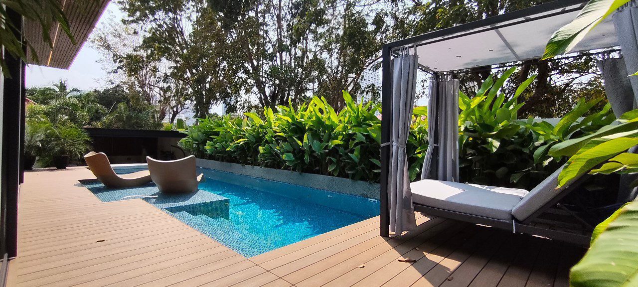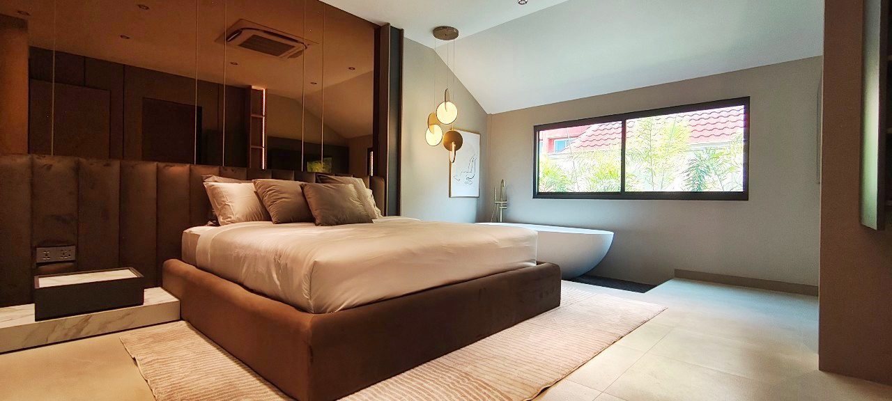 这座令人惊叹的泳池别墅位于 Jomtien,距离海滩仅 500 米,舒适的人行道直接通往海岸。别墅还可快速抵达素坤逸路,开车仅需几分钟,而且靠近国际学校。尽管地处中心位置,但别墅位于一个安静、安全且僻静的村庄,提供私密性,步行即可到达各种餐厅,靠近 Na Jomtien 著名的餐饮场所。