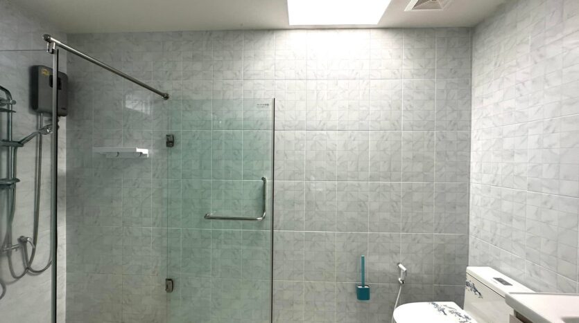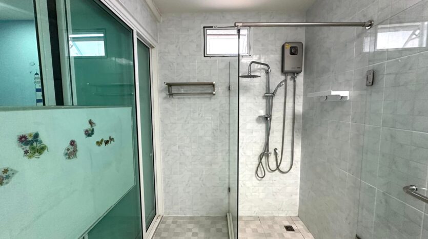 浴室现代整洁,并配有热水器。别墅的室内装饰和装潢精致而温馨,将现代风格与温馨的居家氛围融为一体。