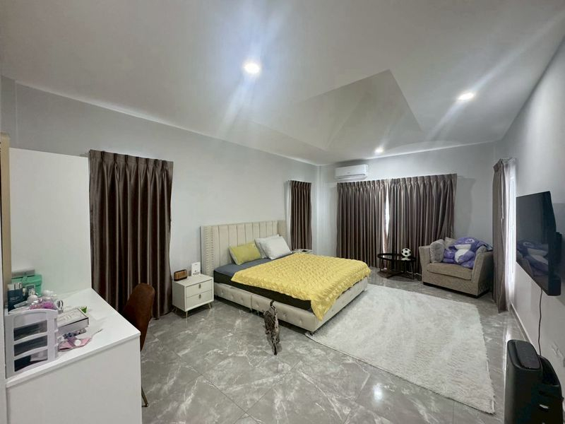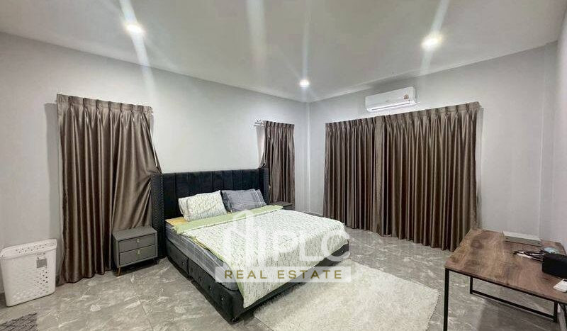 这栋豪华的欧泰风格别墅位于芭堤雅东部宁静的地段,将优雅的欧式设计与温暖的泰式风情完美融合。因此,它非常适合那些寻求精致住宅并希望拎包入住的买家。房屋占地440平方米,拥有260平方米的居住空间。此外,单层布局提升了日常生活的舒适性和便利性。