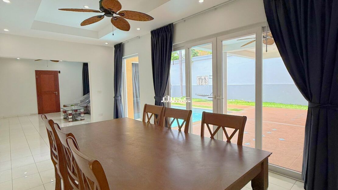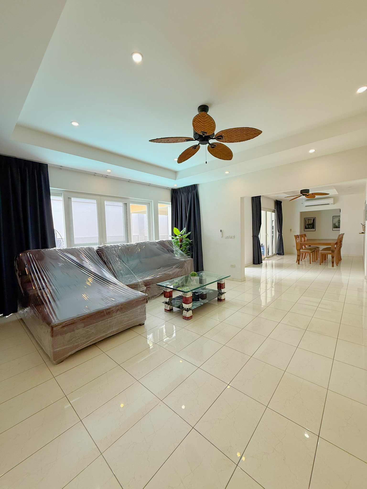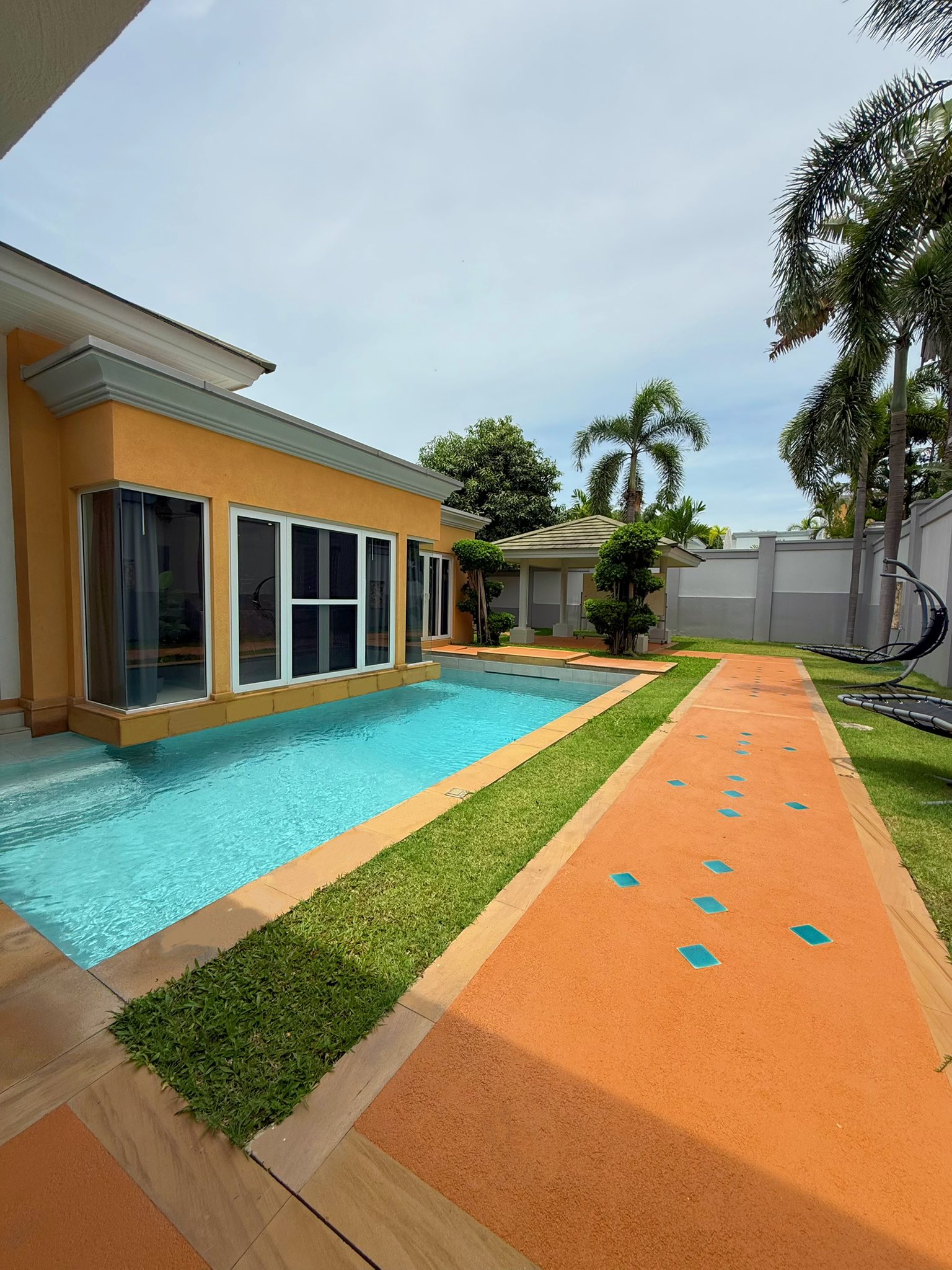 这栋优雅的三卧四卫泳池别墅出租,兼具舒适与实用,让您体验奢华的热带生活。别墅位于芭堤雅宁静的住宅区,融合了现代设计、宽敞的起居空间和私密的户外环境,是家庭或长期居住的理想之选。