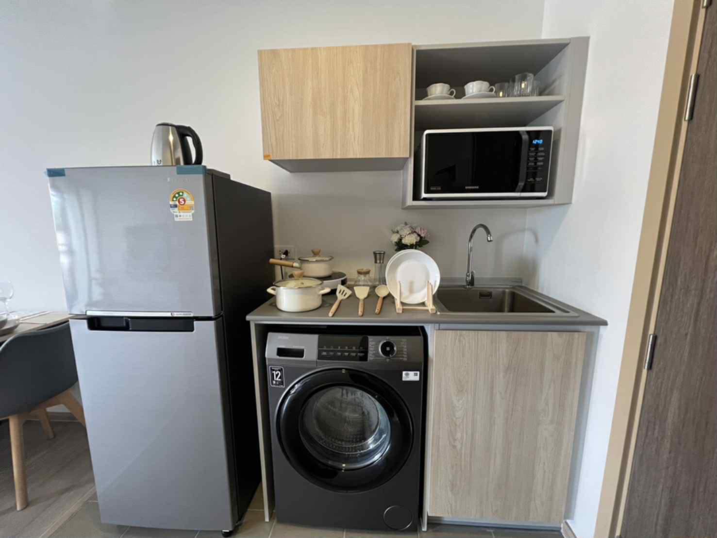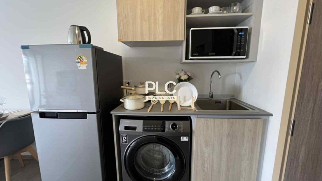 Vay Pothisan 工作室出售 – 这套家具齐全的工作室位于芭堤雅北部 Vay Pothisan 的二楼,提供 25 平方米的实用居住空间,由泰国业主所有。公寓设有一间浴室,并配备优质家具,包括沙发、餐桌、办公桌、鞋柜、嵌入式衣柜和嵌入式厨房。此外,还配备洗衣机、微波炉和电视等电器,无论是舒适居住还是出租投资,都可轻松应对。
