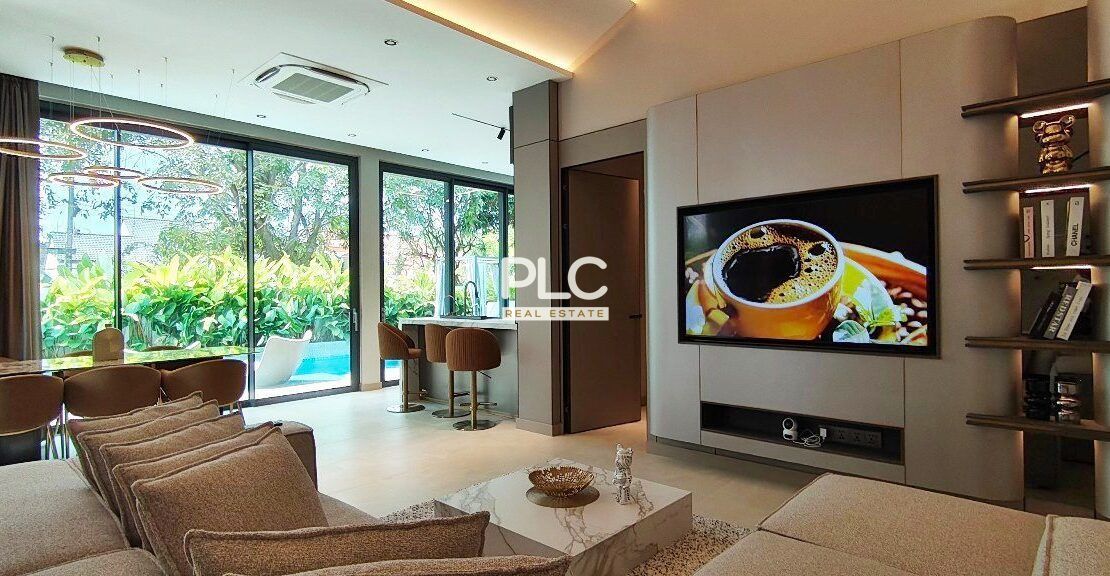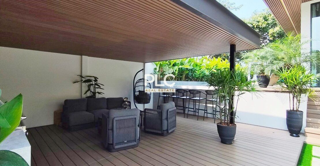 该住宅专为极致舒适而设计,配有 7 台全新吊顶式空调、带升降和滑动功能的双层钢化玻璃重型铝窗以及 Elica、Electrolux、Bosch 和 Samsung 的顶级电器。通过 Zigbee Gateway 控制的智能家居系统提高了便利性。所有台面均采用烧结石制成,确保耐用性和优雅性。别墅拥有全新的管道系统、9,000L 地下水箱和升级的电气系统,配有新的三相电表。在户外,居民可以享受 3.5 x 10.5 米的海水游泳池,周围环绕着郁郁葱葱的热带景观,增强了宁静的氛围。