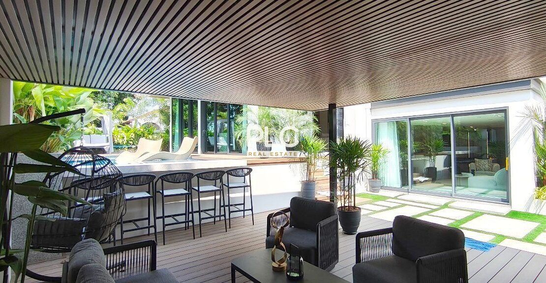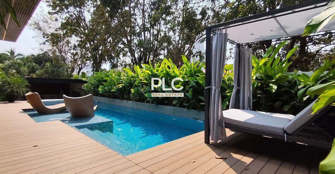 这座令人惊叹的泳池别墅位于 Jomtien,距离海滩仅 500 米,舒适的人行道直接通往海岸。别墅还可快速抵达素坤逸路,开车仅需几分钟,而且靠近国际学校。尽管地处中心位置,但别墅位于一个安静、安全且僻静的村庄,提供私密性,步行即可到达各种餐厅,靠近 Na Jomtien 著名的餐饮场所。