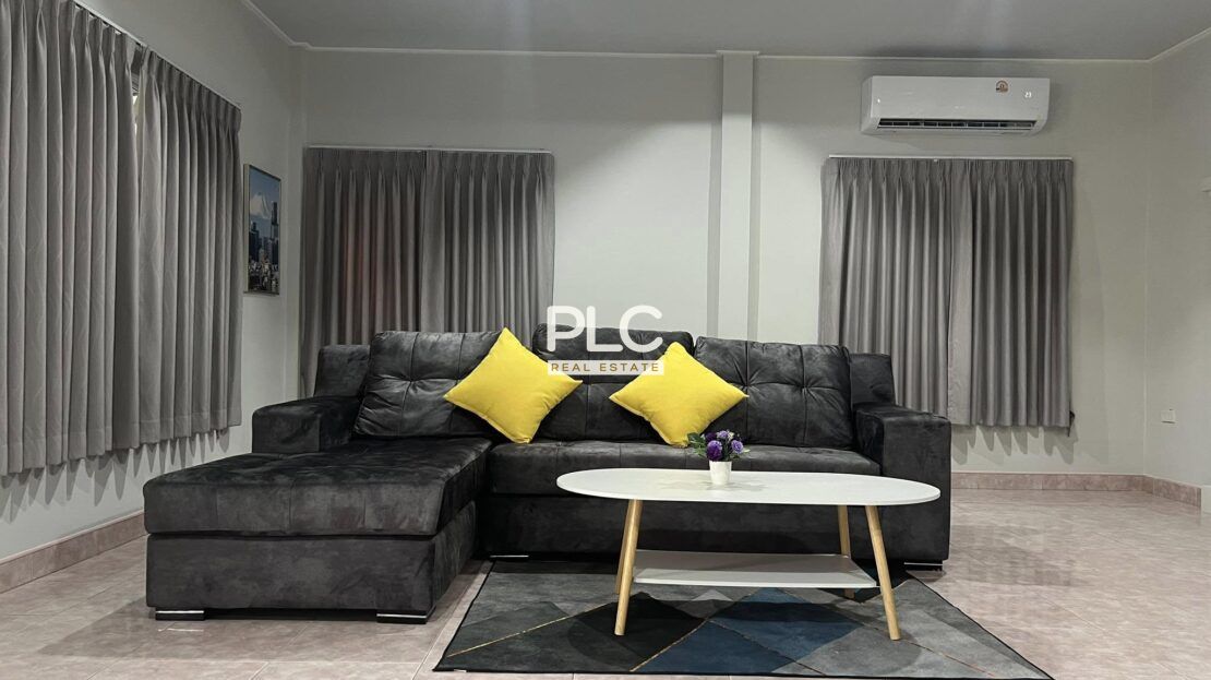 位于Thepprasit的两居室房屋出租 – 这套迷人的两居室三卫房屋坐落在400平方米的地块上,提供宽敞舒适的居住空间。房屋实用面积约150平方米,设施齐全,设有带沙发和电视的宽敞起居区以及泰式厨房。房屋外部拥有一个大花园和私人停车场,是追求舒适与宁静的黄金地段人士的理想之选。